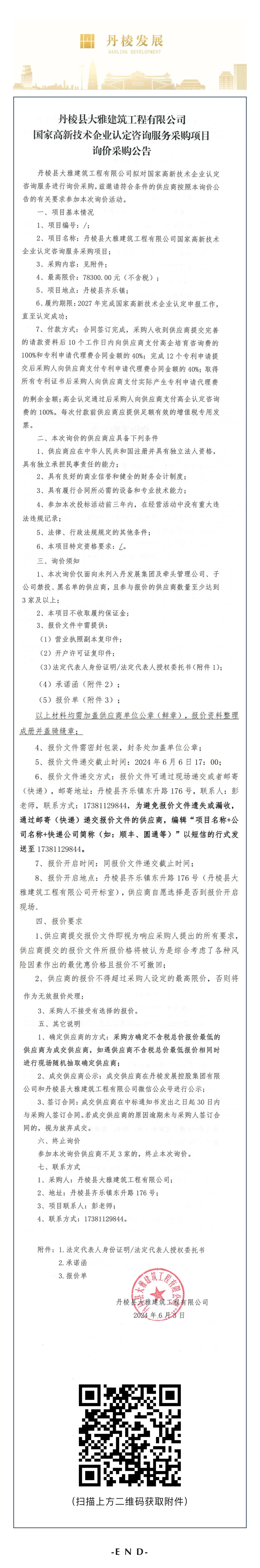 丹棱縣大雅建筑工程有限公司國家高新技術(shù)企業(yè)認定咨詢服務(wù)采購項目詢價采購公告