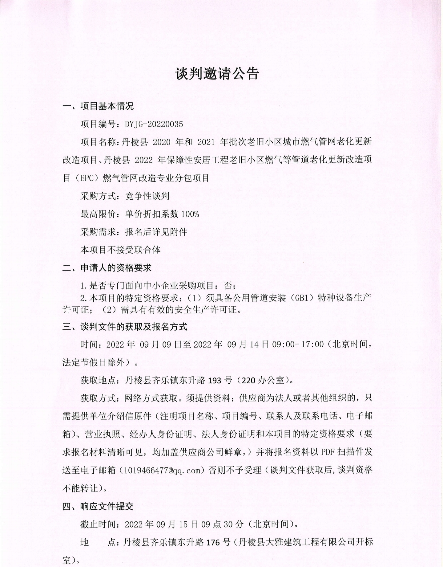 2020年和2021年批次老舊小區(qū)城市燃?xì)夤芫W(wǎng)老化造專業(yè)分包更新改造項目、2022年保障性安居工程老舊小區(qū)燃?xì)夤艿览匣赂脑祉椖浚‥PC)燃?xì)夤芫W(wǎng)改造專業(yè)分包項目談判邀請公告