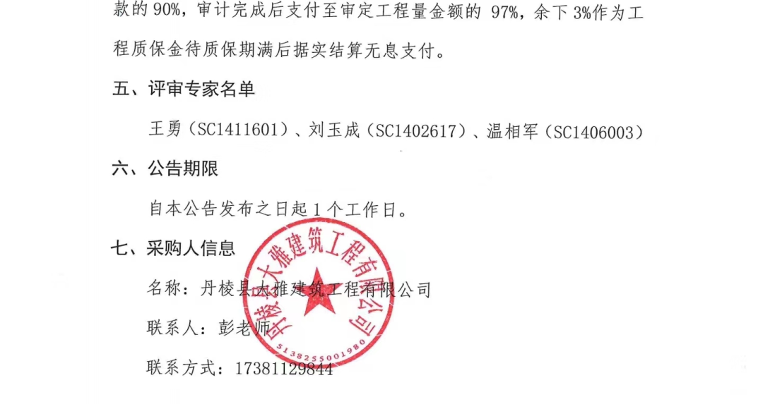 丹棱縣2020年、2021年、2022年保障性安居工程老舊小區(qū)燃氣等管道老化更新改造項目路面黑化工程專業(yè)分包項目成交結果公告