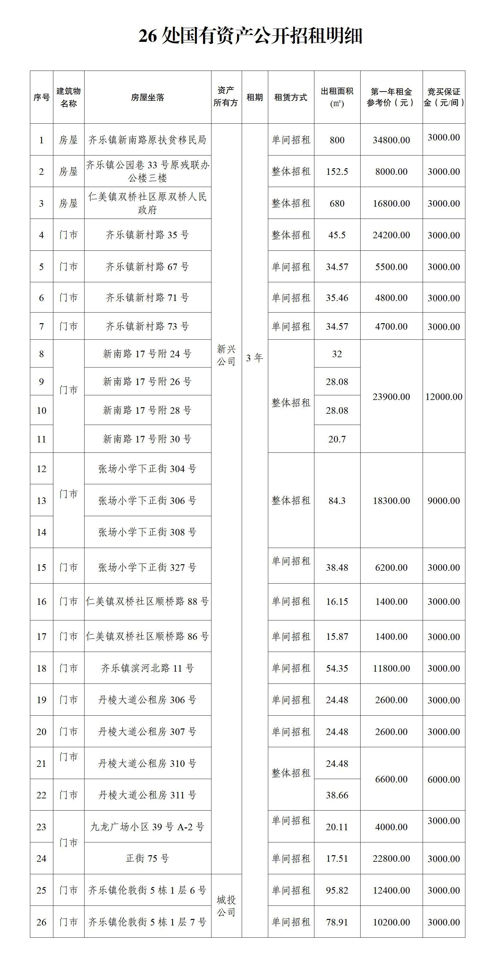 丹棱縣26處國(guó)有資產(chǎn)3年租賃權(quán)