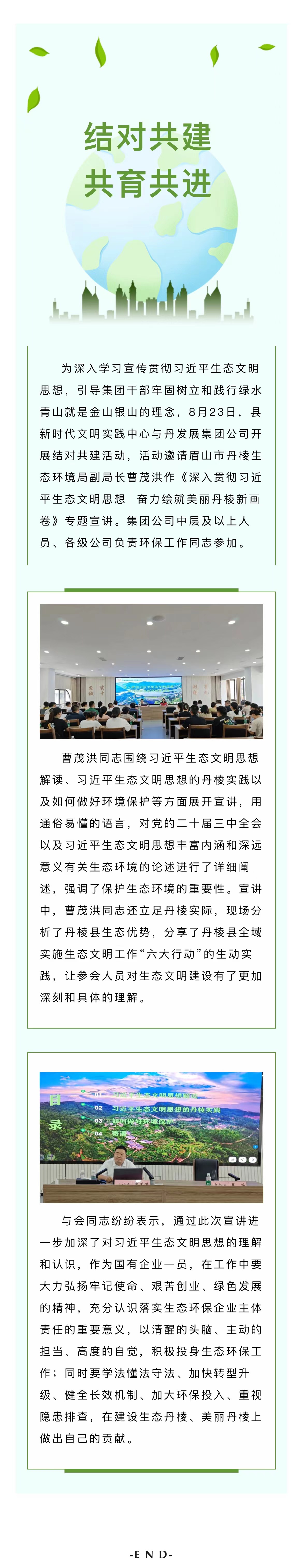 結(jié)對共建,共育共進|縣新時代文明實踐中心與丹發(fā)展集團公司舉辦習近平生態(tài)文明思想專題宣講活動