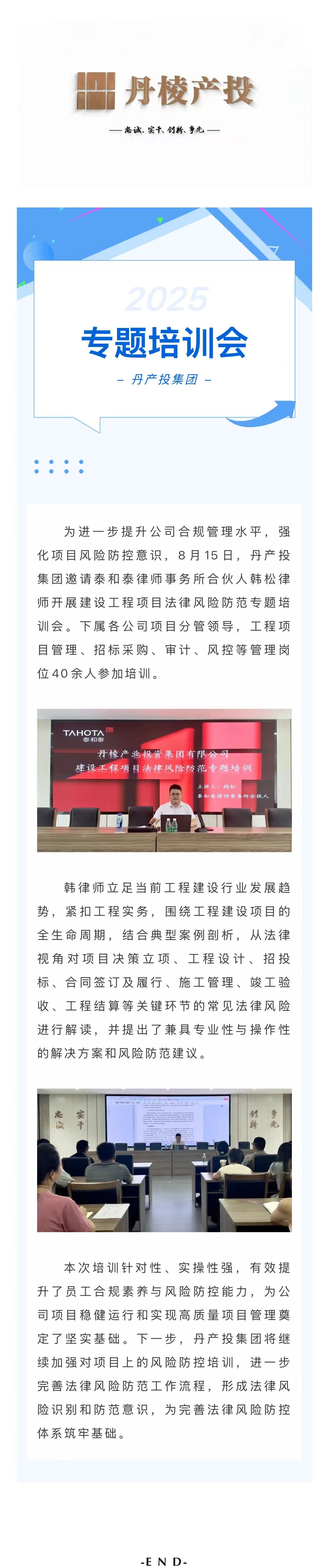 丹產(chǎn)投集團開展建設(shè)工程項目法律風(fēng)險防范專題培訓(xùn)會