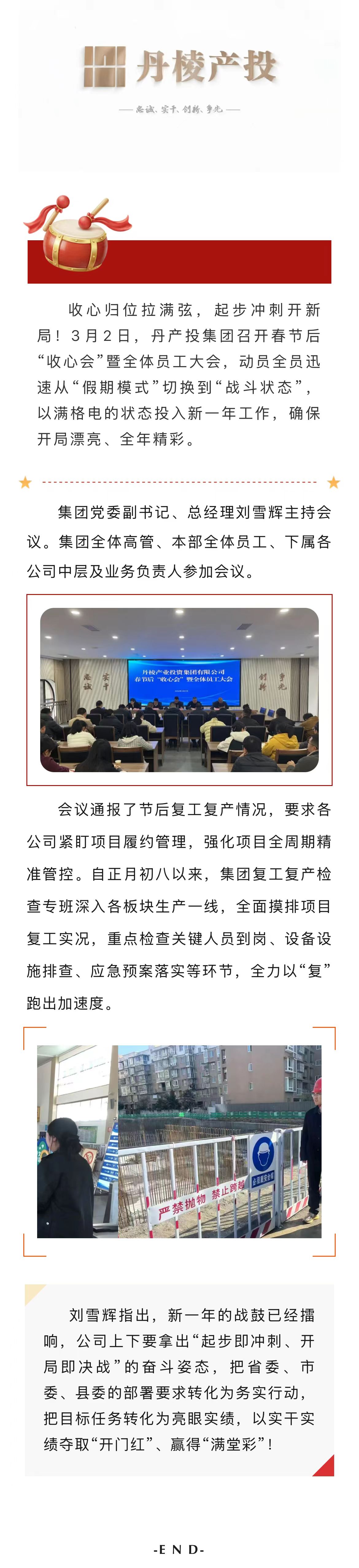 收心歸位拉滿弦 起步?jīng)_刺開新局——丹產(chǎn)投集團召開春節(jié)后“收心會”暨全體員工大會