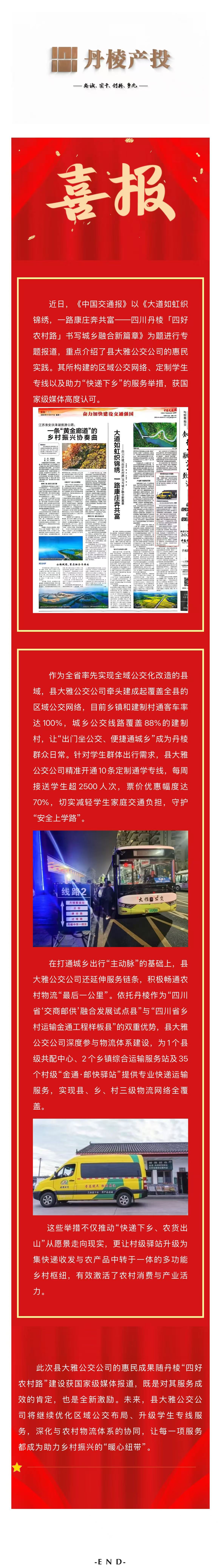 【縣交投公司】喜報!丹棱大雅公交惠民實踐登《中國交通報》,區(qū)域公交、學生專線與快遞下鄉(xiāng)織密幸福網(wǎng)
